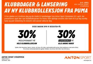 08.-11.april får du ekstra rabatterte priser hos Anton Sport på Thon Senter Strømmen