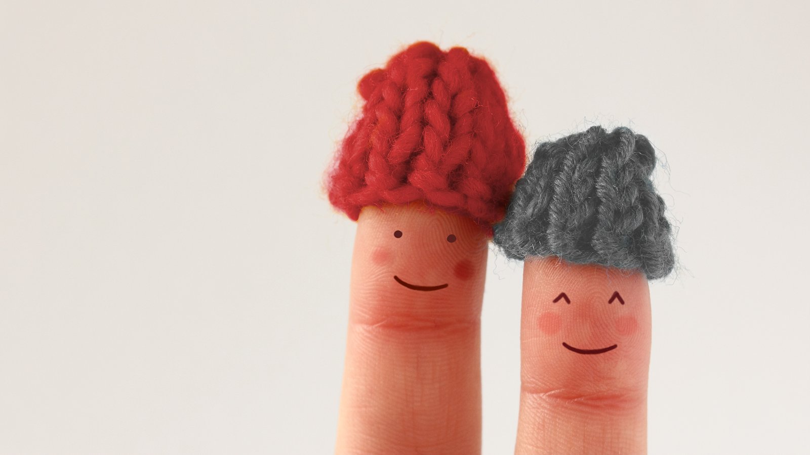 Stem på rødt og grått strikketøy!