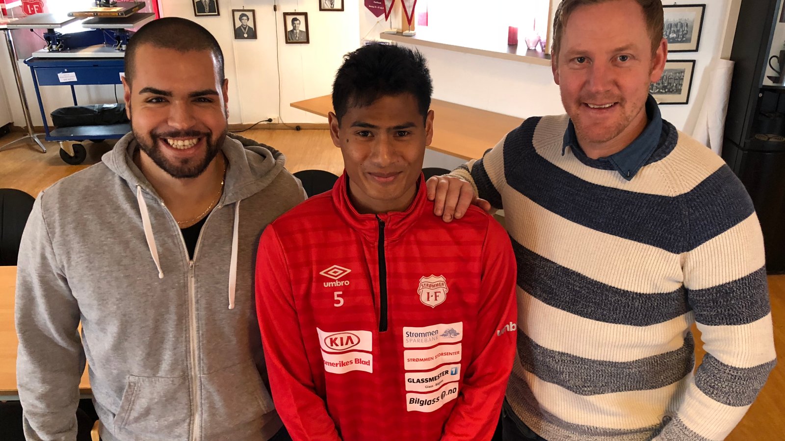 (På bilde fra venstre: Imad Elhammichi (Sverre Bjørkkjær sin agent), Sverre Bjørkkjær og hovedtrener Espen Olsen.)
